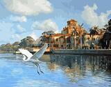 Картина по номерам «Белая птица над рекой у замка» 40x50 см