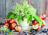 «Ландыши и натюрморт из голубики и яблок»